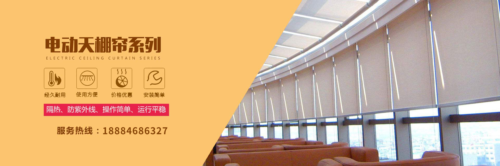 成都錦恒窗飾有限公司是一家專業從事智能化遮陽窗飾產品研發,銷售,設計,生產和安裝的企業,坐落于成都市成華區。本公司有專業的設計工程師數名對智能遮陽產品有著10多年的設計和安裝經驗,專業的施工團隊對智能遮陽產品有豐富的安裝經驗。 主營產品,電動天棚簾,中空玻璃隔斷,電動蜂巢簾,電動舞臺開合幕,電動升降,電動窗簾,電動卷簾,電動百葉簾,電動消防百葉窗,電動伸縮雨棚,電動天幕,電動香格里拉簾,電動柔...